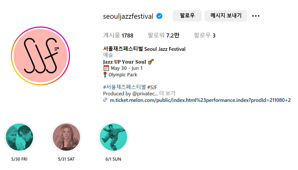 서울재즈페스티벌은 2007년 처음 시작된 이후 매년 5월 말에서 6월 초 사이에 개최되며, 재즈를 중심으로 다양한 장르의 음악을 선보이는 축제입니다. 올림픽공원 내 4개의 무대에서 동시에 공연이 진행되며, 관객들은 각 무대를 자유롭게 이동하며 다양한 공연을 즐길 수 있습니다. 또한, 페스티벌 기간 동안 다양한 음식과 음료를 즐길 수 있는 푸드존과 아티스트들의 굿즈를 구매할 수 있는 마켓 등 부대시설도 마련되어 있어 풍성한 페스티벌 경험을 제공합니다.