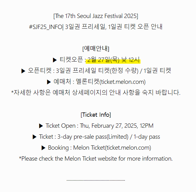 서울재즈페스티벌 예매 방법
