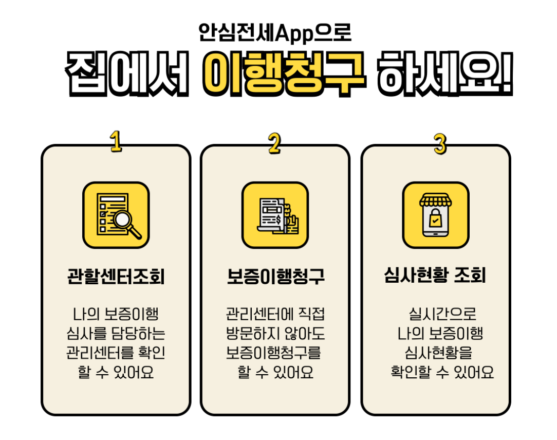 보증이행을 청구하기 위해서는 임대차 계약이 종료된 후에도 보증금을 반환받지 못한 경우, 또는 임대차 계약 중 임차권등기를 마친 경우에 신청이 가능합니다. 신청이 완료되면, 심사 과정이 진행되며, 심사가 통과되면 보증금이 임차인의 계좌로 지급됩니다. 신청 과정은 모두 온라인으로 진행되며, 제출해야 할 서류도 모바일을 통해 간편하게 업로드할 수 있습니다.