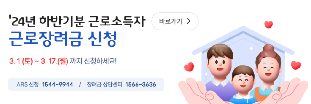 2024년 하반기분 근로장려금 신청 기간은 2025년 3월 1일부터 3월 17일까지입니다. 이 기간 동안 2024년 하반기(7월~12월)에 근로소득만 있는 가구가 신청 대상입니다. 근로소득 외에 사업소득이나 종교인 소득이 있는 경우에는 2025년 5월 1일부터 5월 31일까지 진행되는 정기 신청 기간에 신청하셔야 합니다.