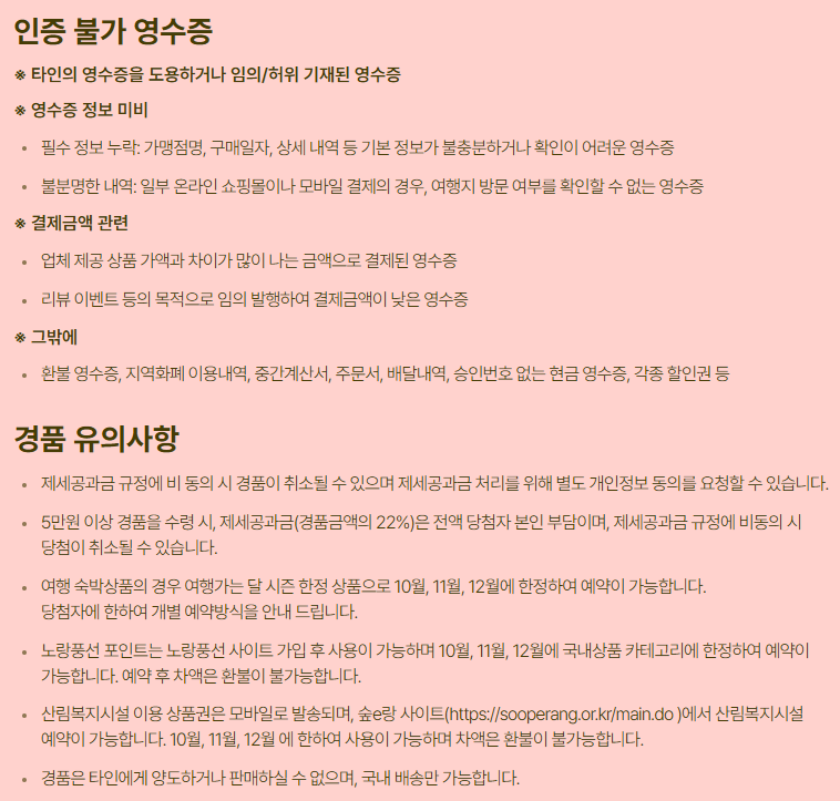 - 5만 원 이상의 경품 수령 시, 제세공과금(경품 금액의 22%)은 당첨자 본인이 부담해야 하며, 이에 동의하지 않을 경우 당첨이 취소될 수 있습니다.
