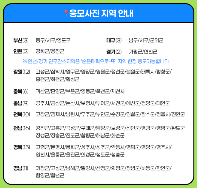 여행 지역: 숨은 매력으로-또: 인구감소지역으로 지정된 곳 / 방방 곡곡으로-또: 수도권(서울, 인천, 경기)을 제외한 전국 모든 지역