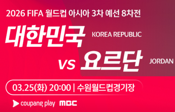 중계: Coupang Play, SBS - 대한민국 vs 요르단