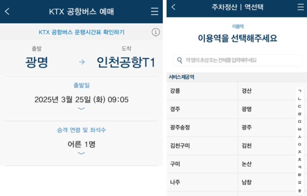 코레일톡 편리한 기능 (길 안내, 주차, 공항버스 등)