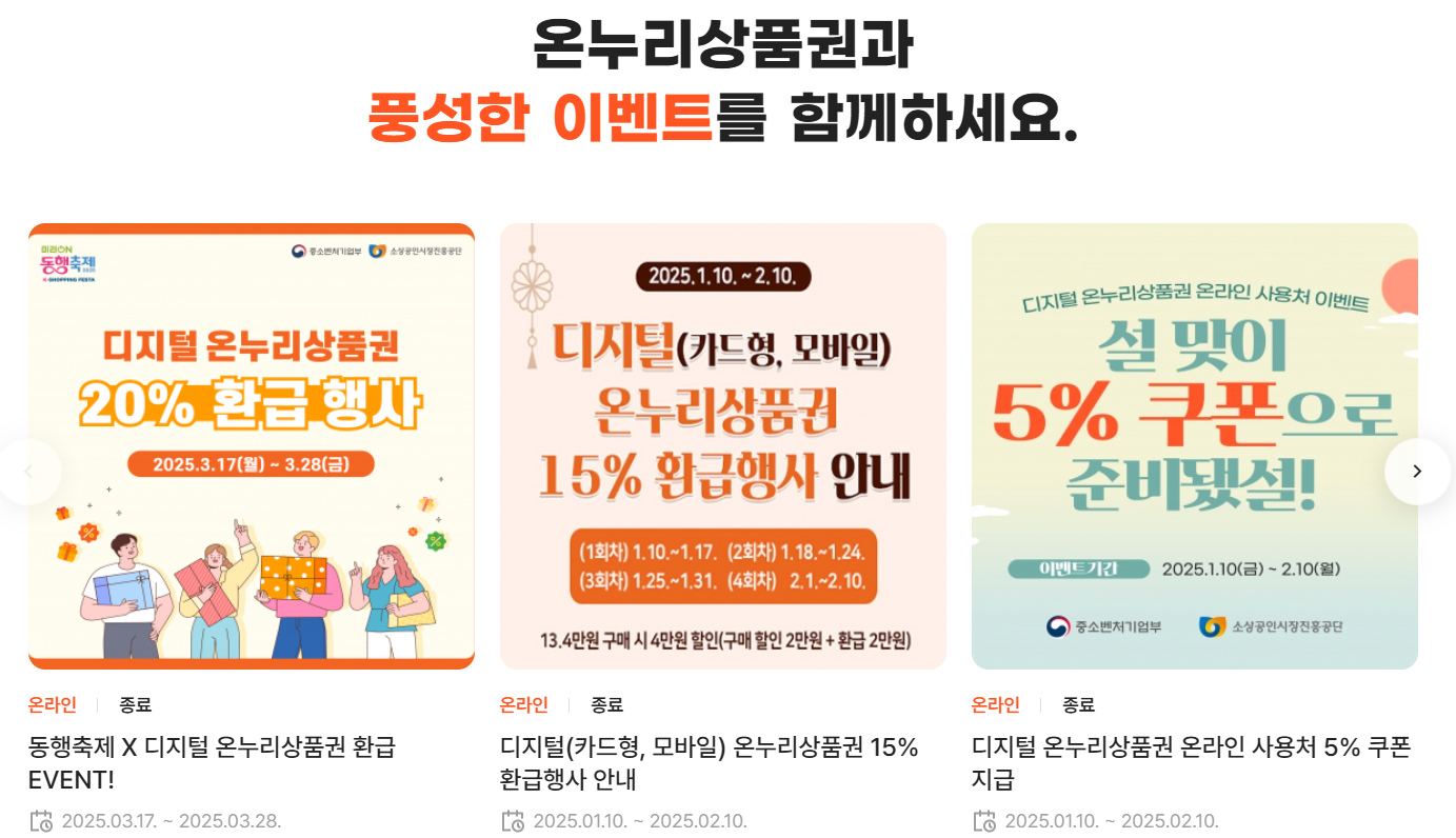디지털 온누리상품권 진행 중인 이벤트