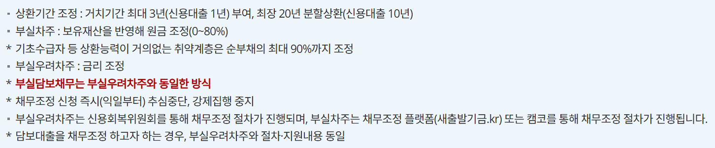 * 상세내용은 새출발기금 공지사항 참조