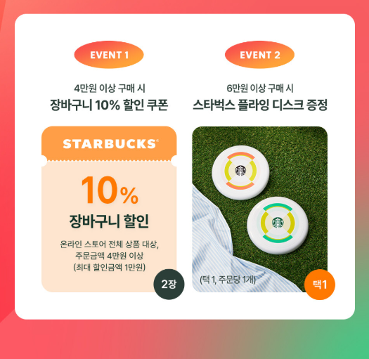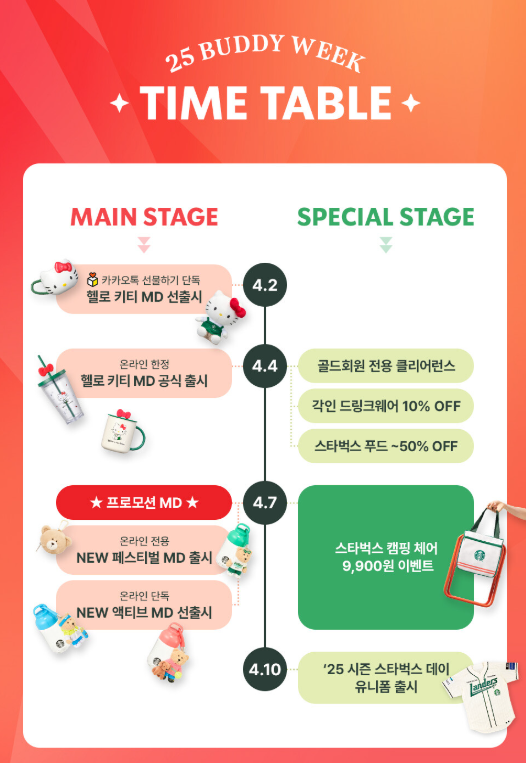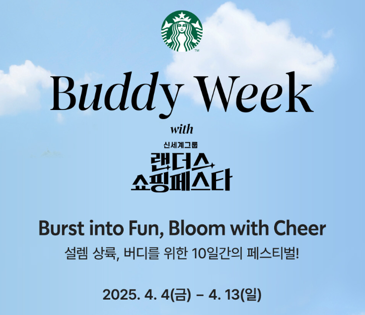 스타벅스는 랜더스 쇼핑 페스타와 함께 '버디위크' 온라인 프로모션을 진행하고 있습니다. 이 기간 동안 스타벅스의 인기 상품들을 온라인에서 특별한 혜택으로 만나보실 수 있습니다.