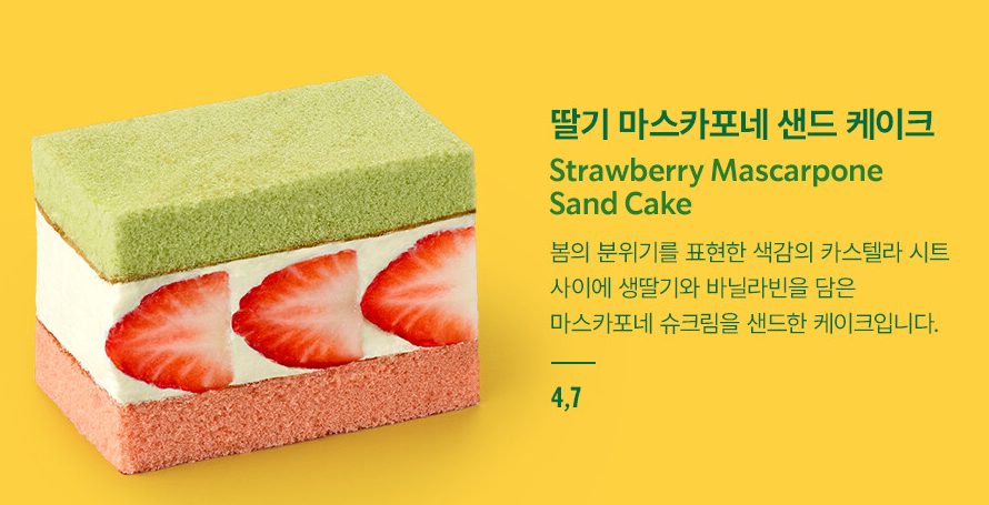 디저트로는 딸기 마스카포네 샌드 케이크가 부드러운 마스카포네 크림과 신선한 딸기가 어우러져 입맛을 돋우며, 부드러운 쑥 팥 생크림롤은 쑥의 향과 팥의 달콤함이 조화를 이루는 맛있는 롤케이크입니다.
