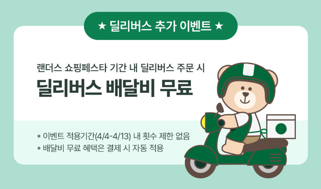 랜더스 쇼핑페스타 기간 내 딜리버리 배달비 무료