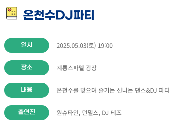 유성온천은 알칼리성 온천수로 피부 미용과 건강에 도움을 주며, 대중교통 접근성도 뛰어나 당일치기 방문객에게 적합합니다. 축제는 유성온천 문화공원 일원에서 진행되며, 자세한 일정은 유성구청 홈페이지를 참고하세요.