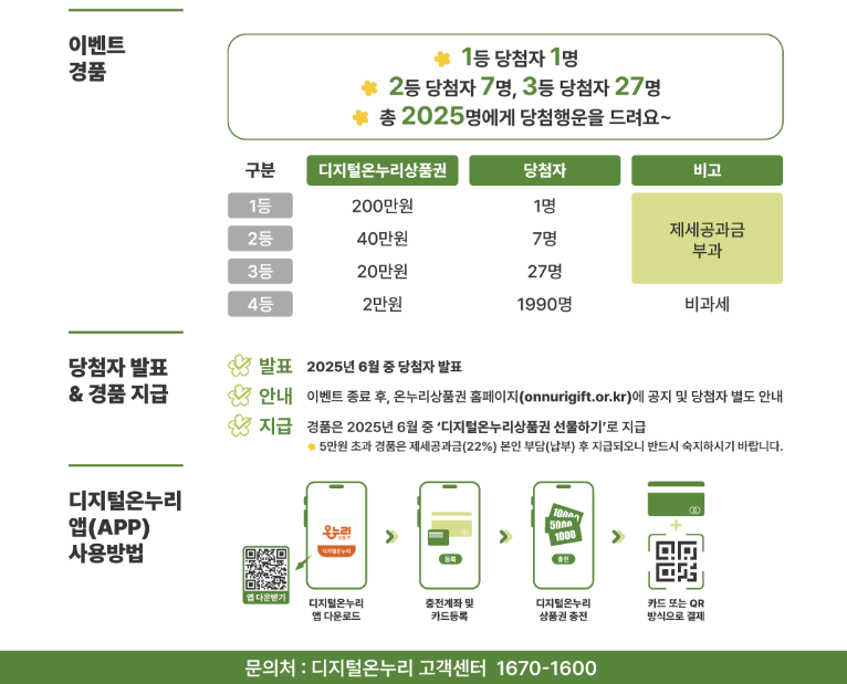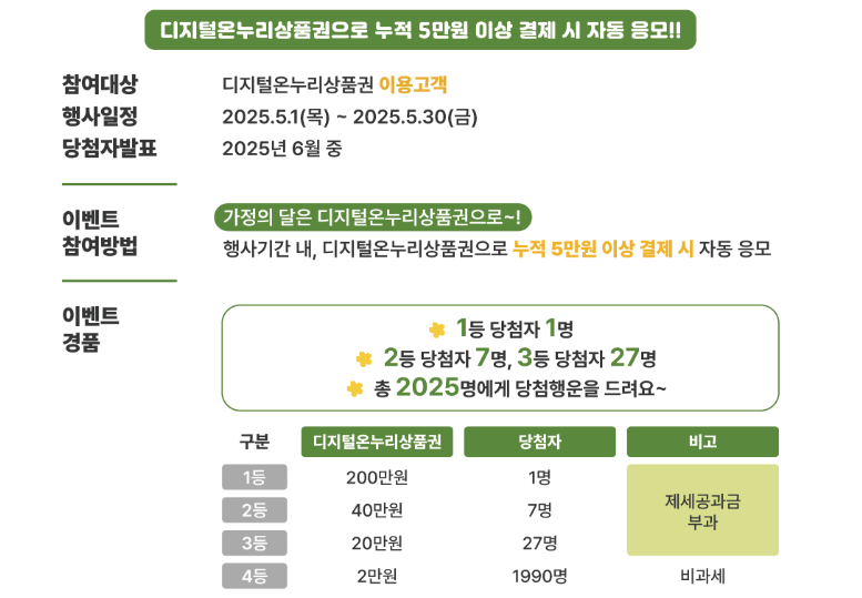 - 디지털 온누리상품권의 경우 디지털온누리앱에 가입한 자에게 선물하기를 통해 경품 지급될 예정입니다.