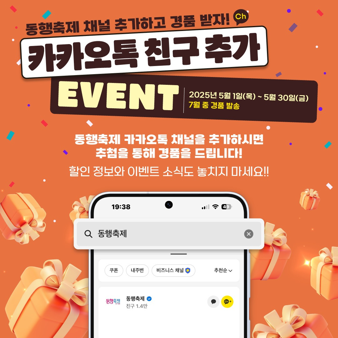또한, 행사 정보를 실시간으로 받아보려면 카카오톡에서 ‘동행축제’ 채널을 추가하면 최신 소식과 이벤트를 편리하게 확인할 수 있습니다.
