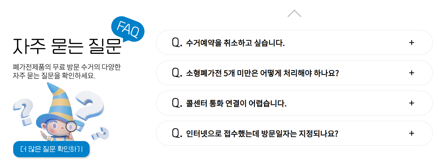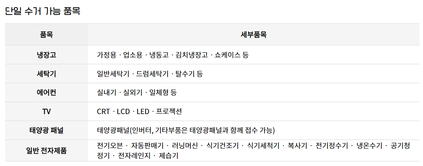 - · 방문수거 대상품목 수거 시, 기타 비대상 소형가전제품 추가 수거 가능합니다.