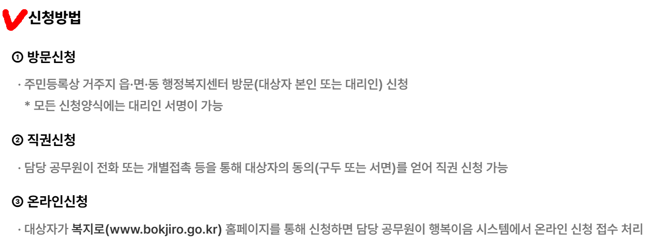 신청은 가까운 읍·면·동 행정복지센터를 통해 직접 접수해야 하며, 기존 수급 이력이 있는 가구는 간단한 갱신 절차만으로도 신청이 가능합니다.