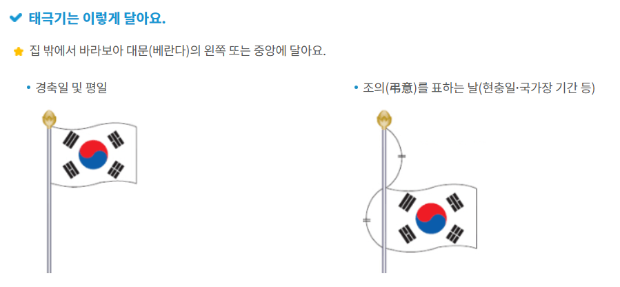 국기 다는 방법 (경축일 및 평일 / 조의를 표하는 날)