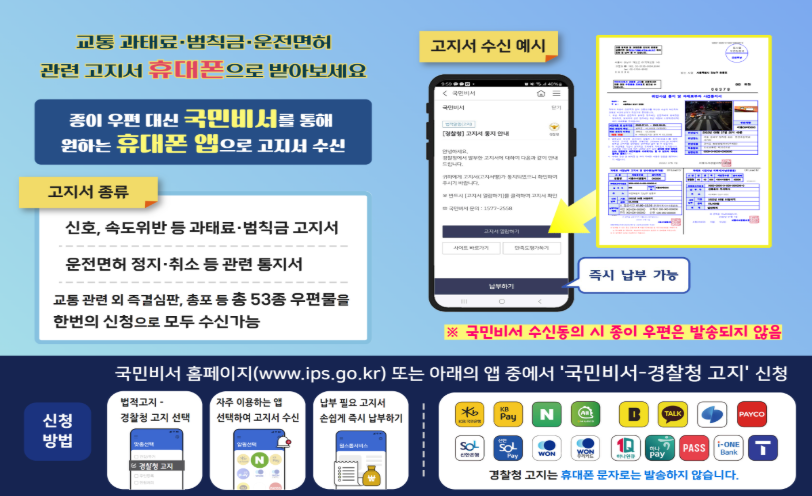 국민비서 모바일 전자고지를 통한 교통 고지서 수령 안내