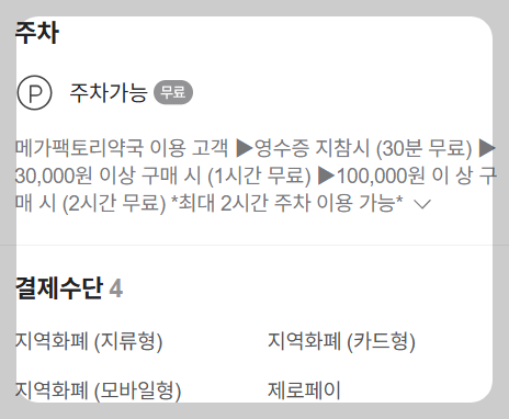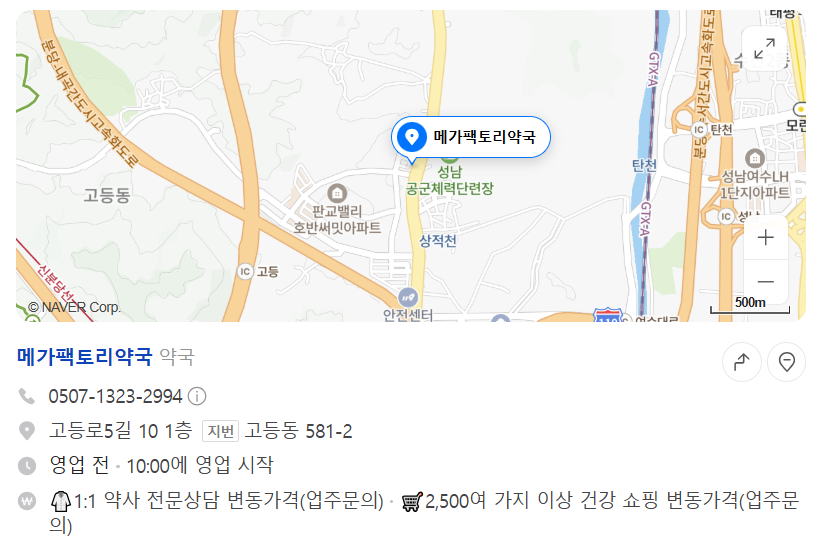 - 이용 시 유의사항: 다만, 방문객이 많을 경우 주차가 다소 혼잡할 수 있다는 후기가 있으며, 주차 공간이 일방통행으로 되어 있어 운전에 주의가 필요할 수 있습니다. 메가팩토리약국 외에 주변의 다른 공영 주차장이나 대체 주차 공간에 대한 구체적인 정보는 확인되지 않습니다.