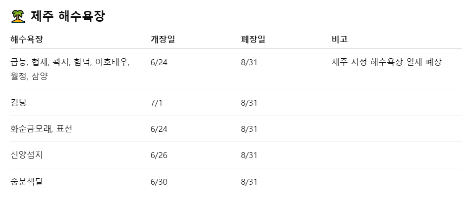 제주 해수욕장 개장일/폐장일