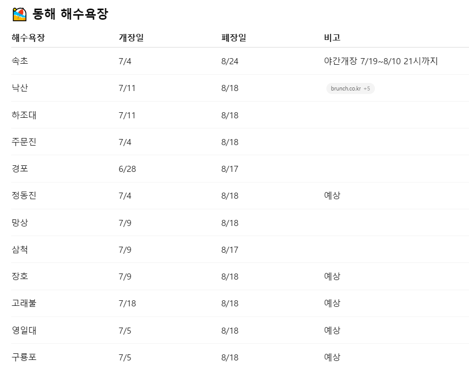 예를 들어 강릉 경포해수욕장은 6월 28일 개장해 8월 25일까지 운영되며, 양양 낙산해수욕장은 6월 29일부터 8월 18일까지 개장합니다. 속초 해수욕장 역시 6월 28일 문을 열어 8월 18일 종료 예정입니다. 동해안은 청정한 수질과 수상안전 인프라가 잘 갖춰져 있어 가족 단위 여행객에게 특히 인기가 높습니다.