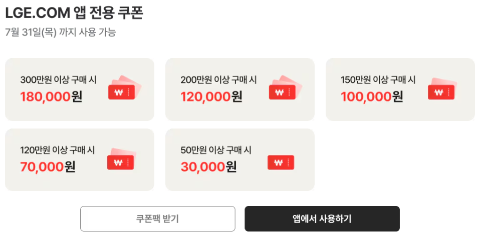 - 할인 중심, 구독 포함 혜택을 원한다면 LG전자 → 온라인 최대 쿠폰 + 추첨 행사 + 구독자 대상 포인트 혜택 + 간편한 환급 인지.