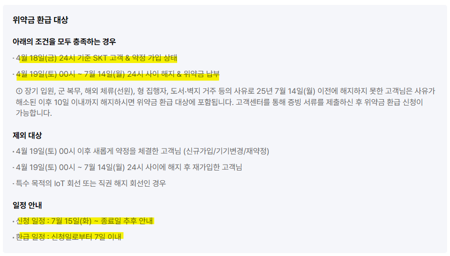4월 19일 00시 이후 새롭게 약정을 체결한 신규가입·기기변경·재약정 가입자나 해당 기간 해지 후 재가입한 경우, 특수 목적의 IoT 회선 또는 직권 해지 회선인 경우에는 환급 대상에서 제외되며 단말 할부금은 환급 대상이 아닙니다.