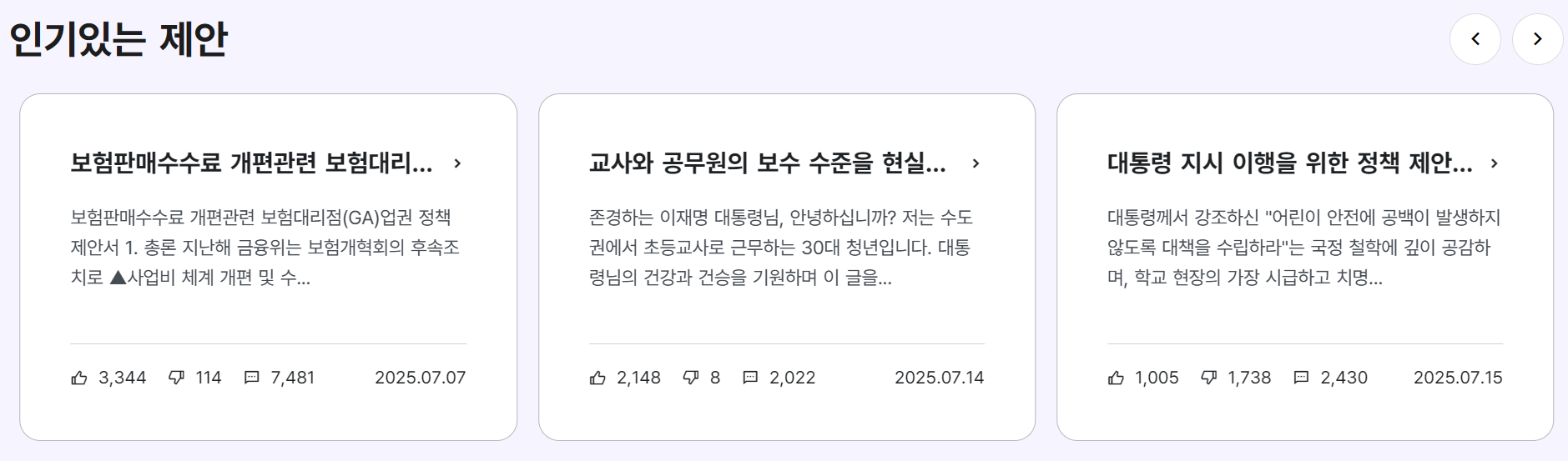 현재 인기있는 제안들