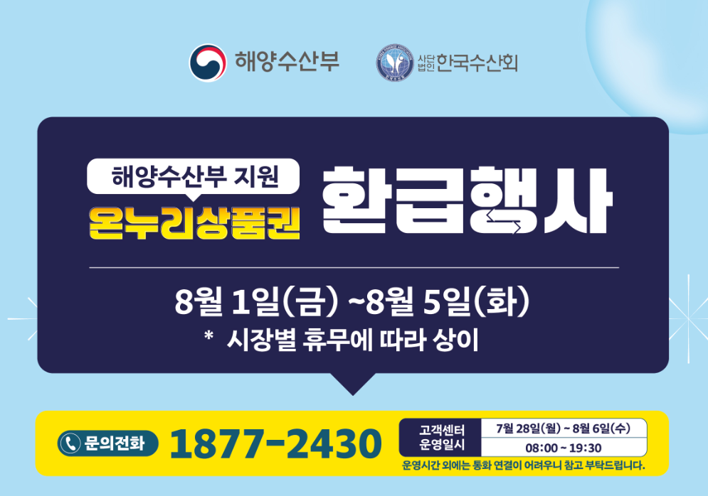대한민국 수산대전, 제철 수산물 할인행사 안내, 온누리상품권 및 제로페이 행사매장, 수산물 카드뉴스 제공