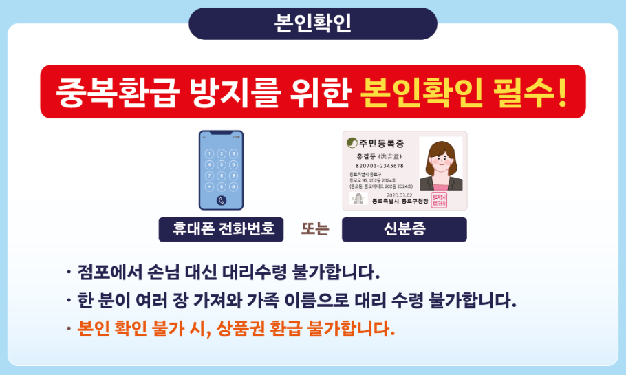 - 본인 확인 수단 미지참시 환급 불가