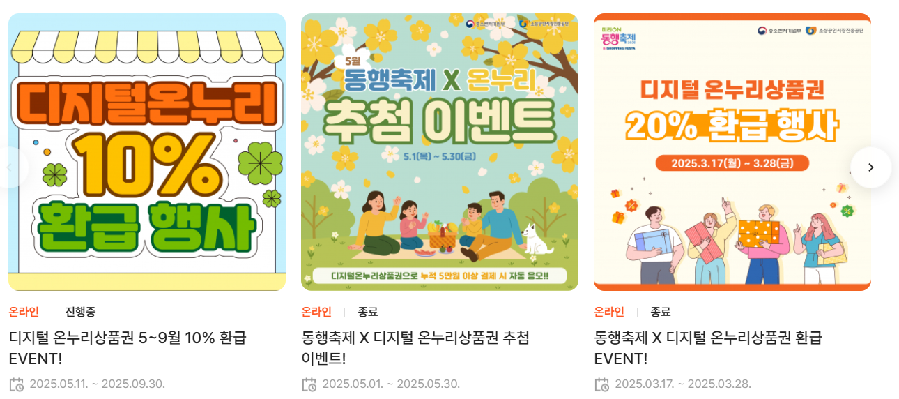 과거 온누리 상품권 환급 행사들