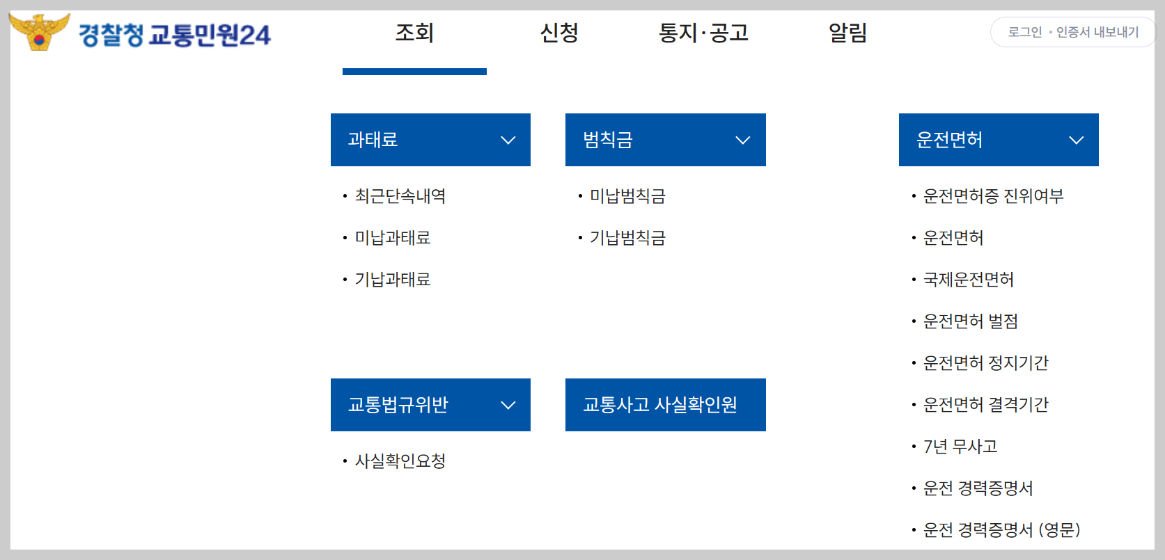 경찰청이 운영하는 '교통민원24'는 국민들이 일상에서 겪는 다양한 교통 관련 민원을 손쉽게 처리할 수 있도록 마련된 종합 온라인 행정서비스 플랫폼입니다. 이 사이트는 교통법규 위반 사실 조회부터 범칙금·과태료 조회 및 납부, 교통사고 사실 확인원 발급, 운전면허 정보 조회 등 일상적인 교통 민원을 인터넷을 통해 처리할 수 있게 해 국민의 시간과 노력을 획기적으로 줄여주고 있습니다. 특히 고령자나 지방 거주자 등 교통 관련 업무를 위해 경찰서를 직접 방문하기 어려운 이들에게 큰 도움이 되고 있습니다.