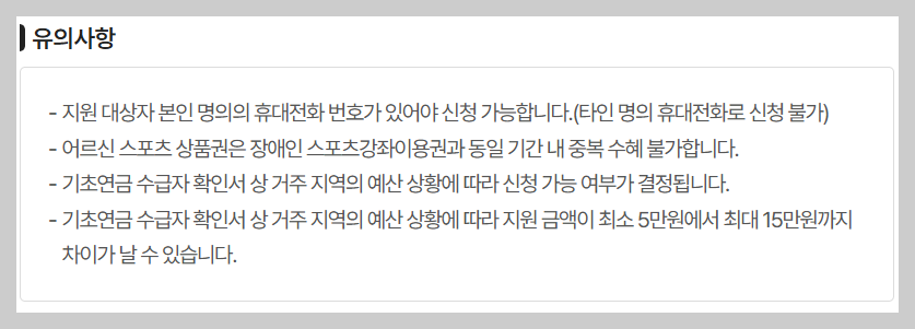 '어르신 스포츠 상품권' 주의 사항 및 문의처