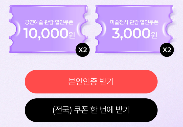 - 할인권 금액: 공연 할인권 1만 원, 전시 할인권 3천 원