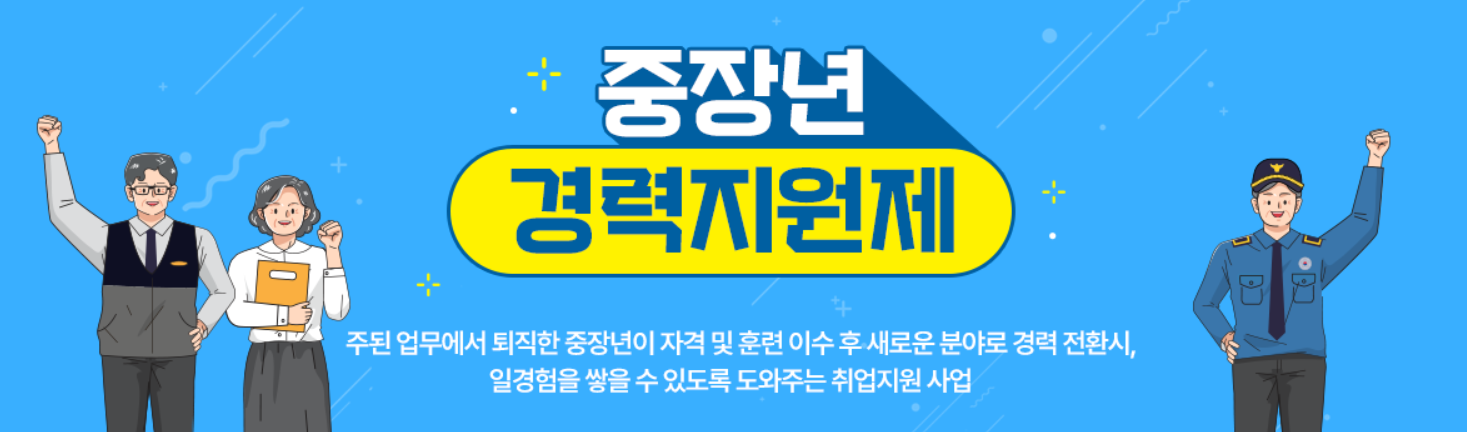 - 대상: 50세~65세 미취업 중장년으로, 관련 기관을 통해 자격 취득 또는 훈련 이수 후 경력 전환을 희망하는 분