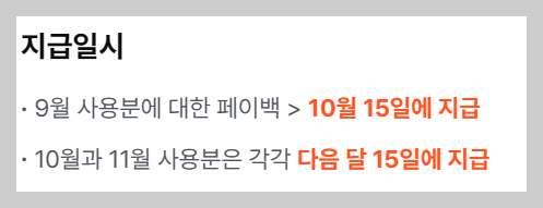 - 소급 지급: 11월 30일(일)까지 신청 시 9~10월 페이백도 소급 지급됩니다.