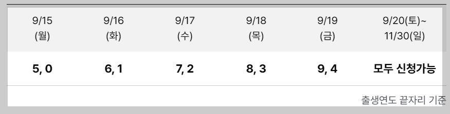 원활한 신청을 위해 첫 주간 5부제가 시행됩니다. 구체적인 운영 방식은 안내에 따라 주시기 바랍니다.