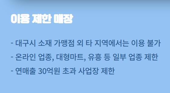 - 출입문, 계산대 주변의 지역사랑상품권·대구로페이 가맹 스티커를 확인하십시오.