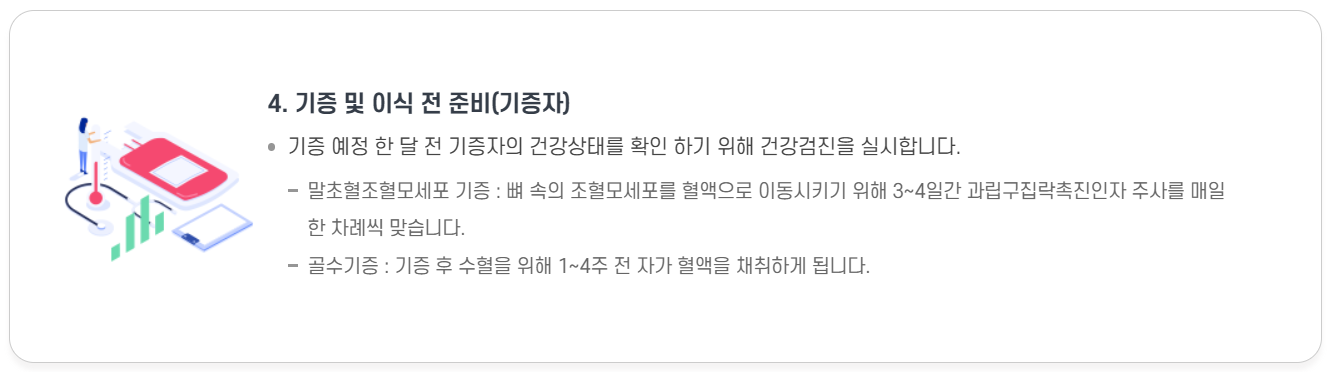 조혈모세포 기증을 위한 기본적인 조건들은 다음과 같으며, 환자와 기증자의 안전을 최우선으로 고려하여 철저한 절차를 거치게 됩니다.