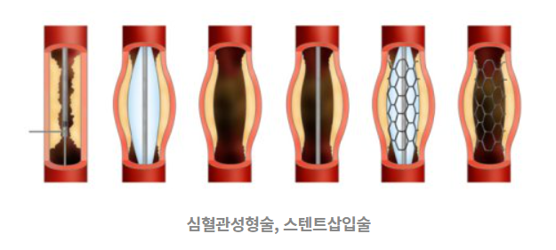 - 관상동맥 중재시술(스텐트 삽입술): 가장 흔히 시행되는 치료법으로, 허벅지나 손목의 혈관을 통해 카테터를 삽입하여 막힌 관상동맥 부위에 스텐트라는 작은 금속 그물망을 넣어 혈관을 확장하고 고정하여 혈액 흐름을 원활하게 합니다.