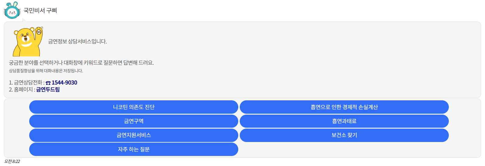 - 금연 자가진단: 나의 니코틴 의존도와 흡연 습관을 파악할 수 있는 자가진단 도구를 제공합니다. 이를 통해 자신에게 맞는 금연 전략을 세울 수 있습니다.