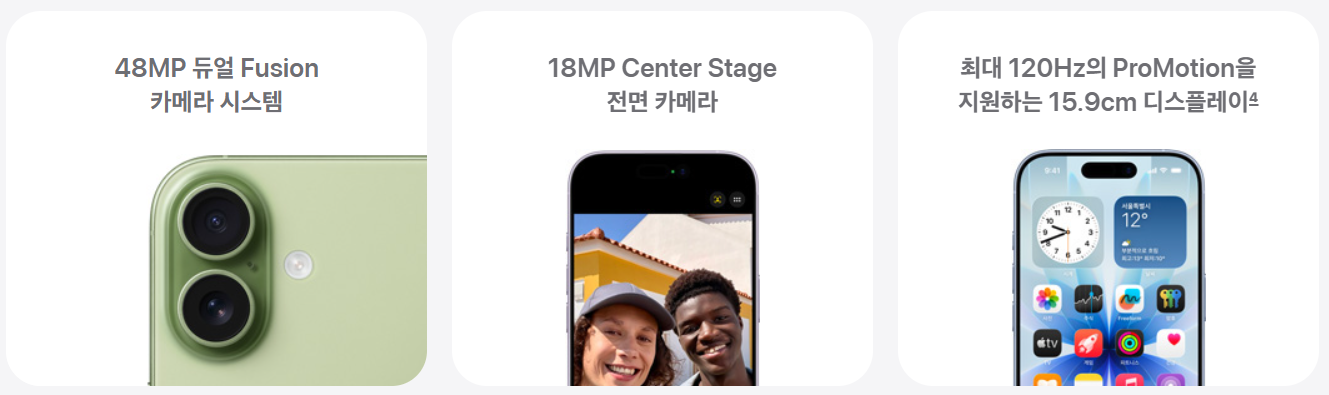 - 퓨전 카메라 시스템: 새로운 4,800만 화소 퓨전 카메라 시스템이 도입되어, 렌즈 4개가 탑재된 것과 동일한 수준의 이미지 품질을 제공합니다. 이는 소프트웨어 최적화와 센서 기술의 발전이 융합된 결과입니다.