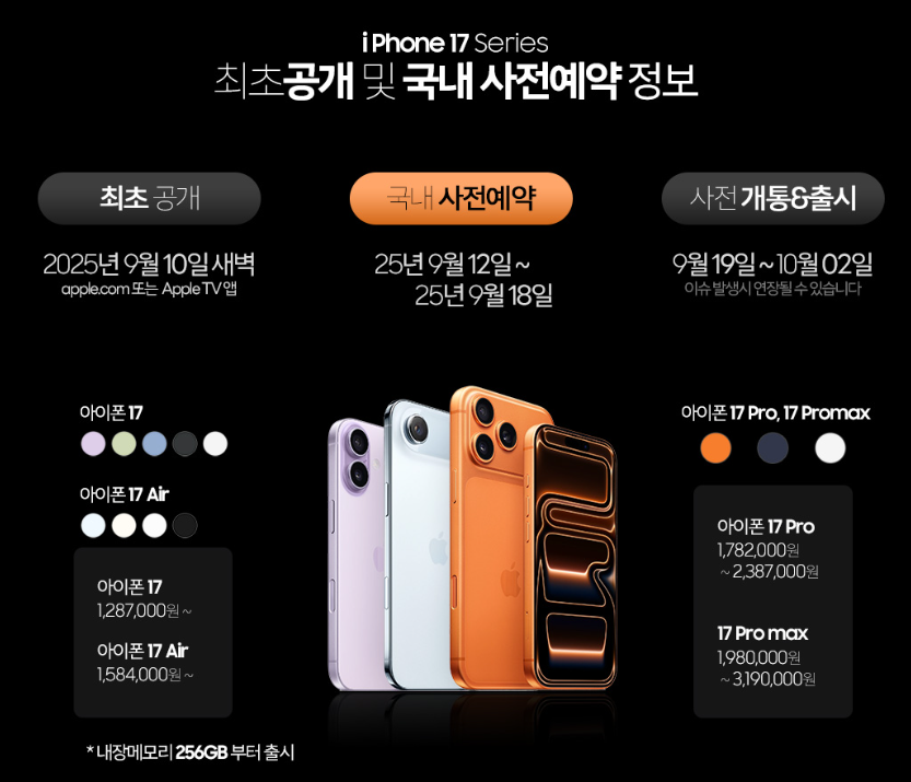많은 분들이 기다려 오셨을 아이폰 17 시리즈의 사전 예약이 드디어 시작됩니다. 새롭게 공개된 아이폰 에어와 함께 아이폰 17 시리즈를 가장 먼저 만나볼 수 있는 기회를 놓치지 마십시오.
