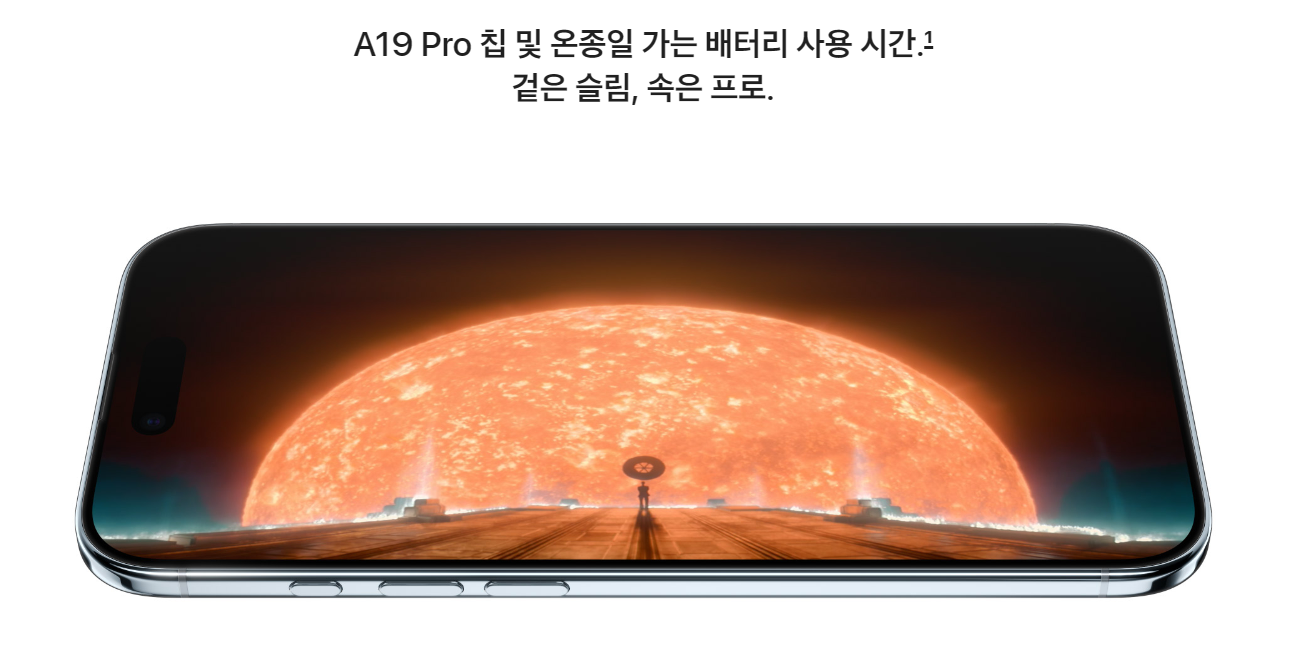 - ProMotion 기술: 기존 프로형 모델에만 지원되던 최대 120Hz의 가변 재생률을 지원하는 ProMotion 기술이 아이폰 에어에도 적용되었습니다. 이를 통해 화면 스크롤, 게임 플레이 등 모든 시각적 경험이 더욱 부드럽고 반응성이 뛰어납니다. 콘텐츠의 프레임률에 맞춰 자동으로 주사율을 조절하여 배터리 효율 또한 향상시킵니다.