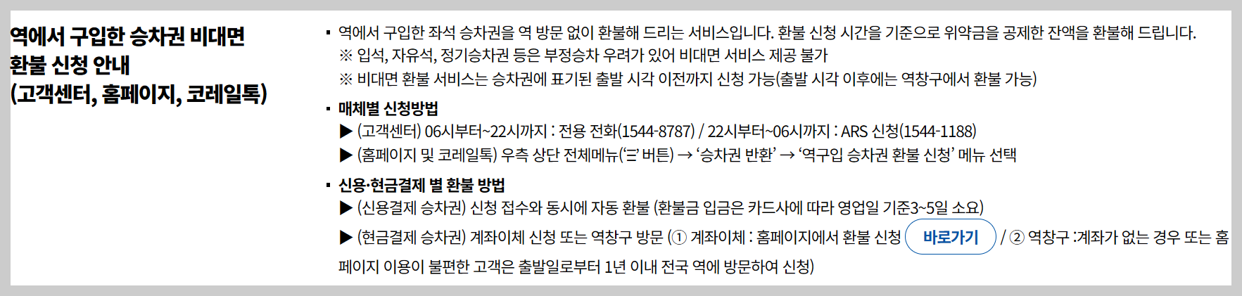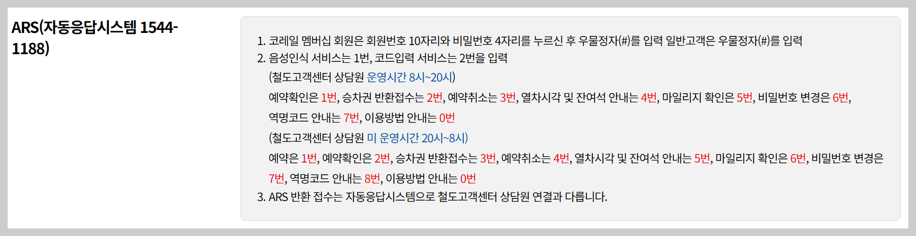 - 철도 고객센터: 1544-7788 또는 1588-7788