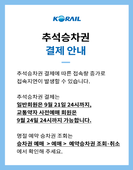 2025 코레일 추석 기차 예매 안내 및 유의사항