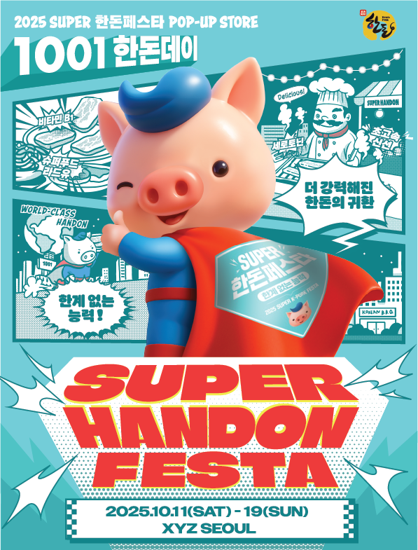 대한민국 대표 돼지고기, 한돈의 다채로운 매력을 경험할 수 있는 '2025 SUPER 한돈 페스타 팝업스토어'가 10월 11일부터 19일까지 9일간 서울 성동구에 위치한 'XYZ SEOUL'에서 개최됩니다. 이번 행사는 '돼지코 모양(1001)'을 본떠 지정된 10월 1일 '한돈데이'를 기념하며, 소비자들이 한돈의 '한계 없는 능력'을 직접 보고, 맛보고, 즐길 수 있도록 기획되었습니다.