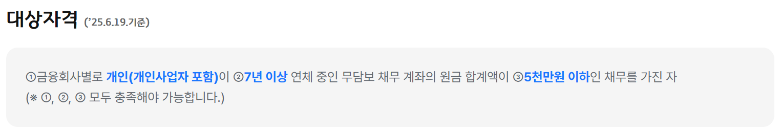 <5년 이상 연체자를 위한 특별 채무 조정>