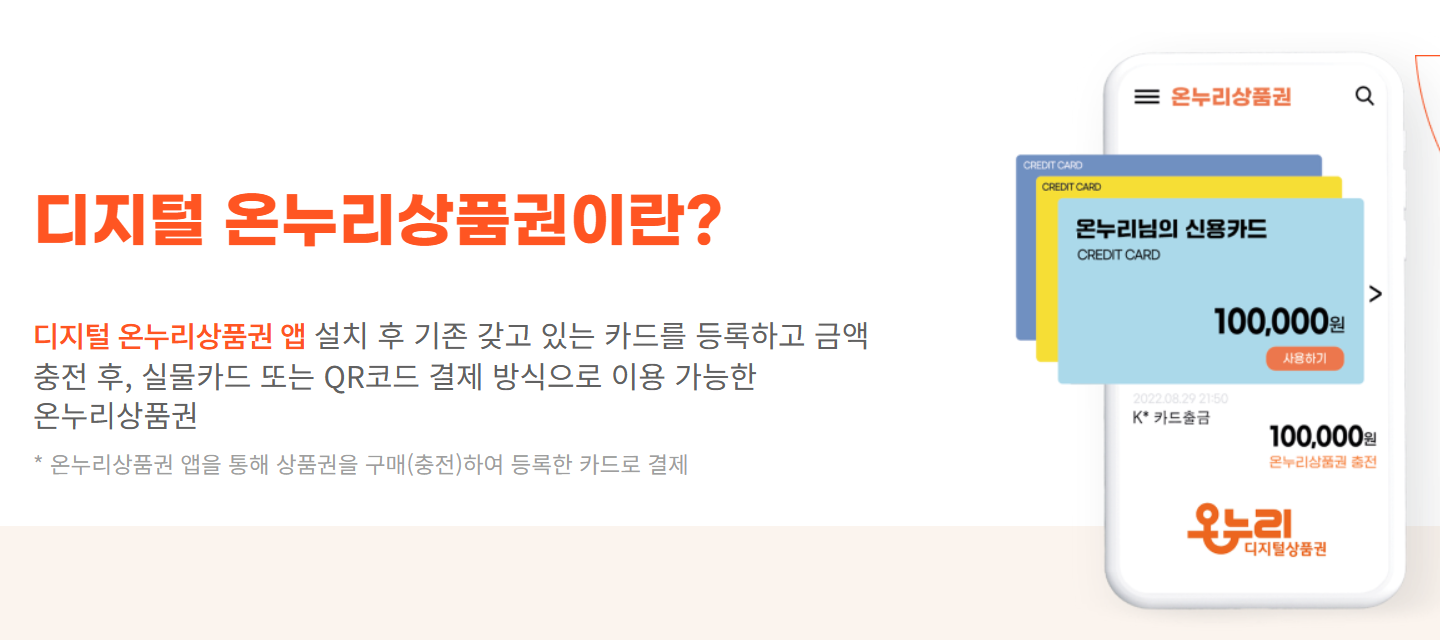 디지털 온누리상품권은 기존에 보유하신 카드를 앱에 등록하여 사용하는 '충전식 카드형 상품권' 방식을 채택하고 있습니다. 앱 내에서 이용하실 결제용 카드(신용/체크카드)를 등록하면, 이 카드를 통해 온누리상품권 가맹점에서 상품권 금액만큼 결제가 이루어집니다. 일부 카드사는 이용이 제한될 수 있으므로, 앱 내에서 또는 카드사 고객센터를 통해 확인하는 것이 좋습니다. 예를 들어, KB국민카드의 경우 앱에 등록하여 온누리상품권 가맹점에서 사용 가능합니다.