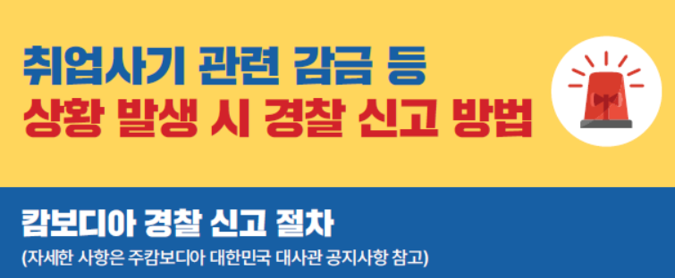 - 취업 사기 유형을 인지하십시오. 범죄 조직들은 항공권 및 비자 발급 비용을 지원해주겠다고 유혹하거나, 현지에 도착하면 여권을 빼앗고 감금하여 강제로 불법 노동을 시키는 경우가 많습니다. 출국 전 반드시 해당 기업 및 채용 공고의 진위 여부를 철저히 확인해야 합니다.
