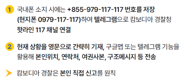 - 현지 문화와 법규를 존중하고 비상연락망을 확보하십시오. 현지 체류 시에는 항상 대사관 비상연락처와 가족 또는 지인의 연락처를 소지하고, 주기적으로 자신의 위치와 안부를 공유하는 것이 중요합니다.