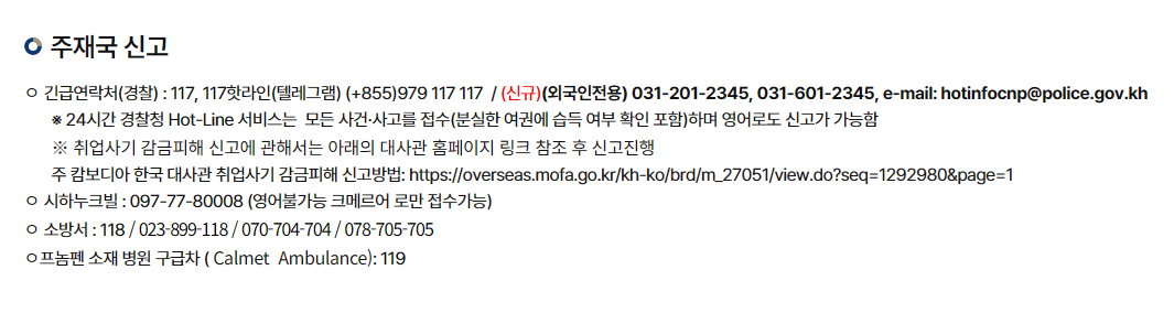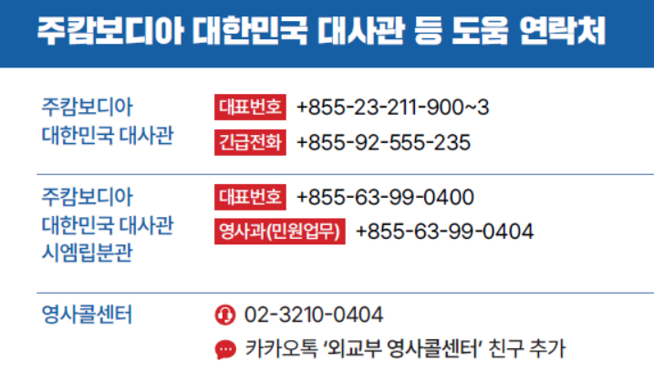 캄보디아를 포함한 동남아시아 지역 방문 및 체류 시, 다음 사항들을 반드시 숙지하여 범죄에 연루되지 않도록 각별히 주의하시기 바랍니다.